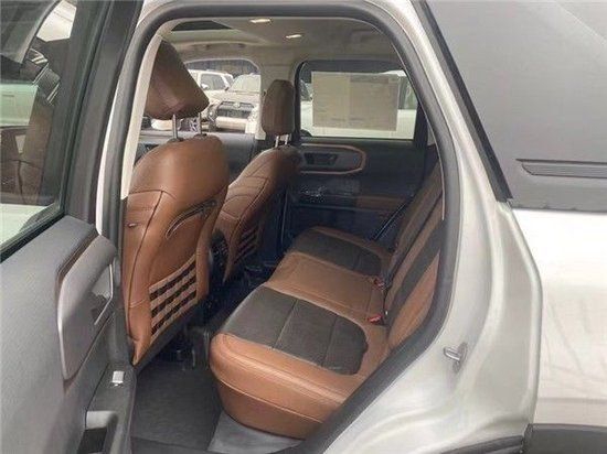 8速变速箱 方向盘换档拨杆 自动启停系统 越野悬架,7种地形模式( 正常,节能,运动,雨滑,泥沟,沙子,岩石爬行) 可阻断差速器,电动助力转向 自动紧急制动防撞辅助(带行人检测),倒车雷达 影像 营地室外照明系统(后备箱) 盲点监测,6.5英寸数字仪表板 胎压监测 移动设备的无线充电器 BO音响 9气囊 座椅加热 远程点火 旋钮档把 110V/400W电流转换器,17英寸(235/65R17全地形越野轮胎),尺寸:Fofd Bronco sport 荒地版 长度:4386mm,高度1813mm,无镜面宽度1888mm,轴距:2670mm。