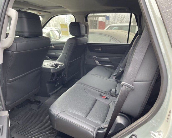 全新23款丰田红杉混动采用了大量软质材料包裹、部分区域还加入了缝线处理、显得档次感和质感十足。另外车内采用的是四辐式多功能方向盘,并保留了很多物理按键,足以满足驾驶时想要的操控感。车内的科技氛围是通过12.3英寸的全液晶仪表盘和14英寸的中控屏来实现的,中控屏两侧的空调出风口,虽然没有采用时下流行的贯通式设计,但在中控台上对称排列也别有一番风味。另外顶点车型的内饰将会采用更加豪华的黑白配色方案并搭配胡桃木装饰面板。