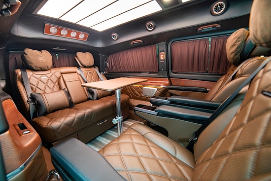 可以看到这款奔驰v260商务车,外观经过了全方位深度定制,大气镀铬进气格栅,楔形天使翼全LED大灯搭配上立标LOGO,将奔驰尊贵的气场瞬间释放。