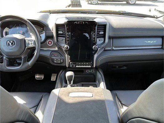 2023款道奇霸王龙的内饰简洁大方为主,但这并不会影响它的豪华质感,丰富的配置会让你不由得为其称赞,同时,作为道奇家族的旗舰车型,新车还配备了12英寸竖置中控屏幕,除了支持蓝牙、导航和车载Wi-Fi等常见功能,还支持Apple CarPlay和Android Auto手机