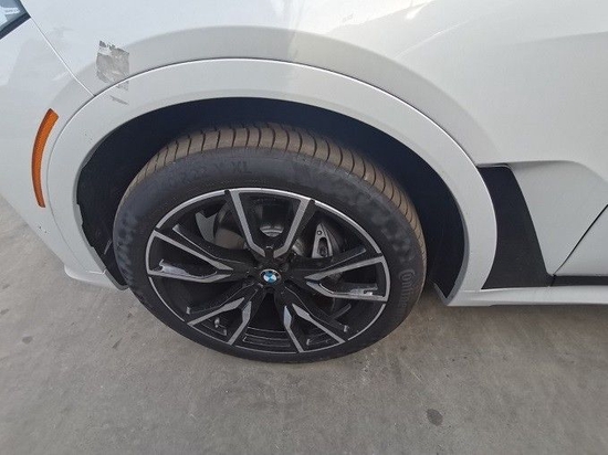2023款宝马X7的侧面线条看起来更硬朗,笔直的腰线从前轮轮拱一直延伸至尾灯。侧翼子板处是和7系 (配置|询价)类似的“曲棍球”设计,更加突出豪华感。此前概念版配备了隐藏式车门把手并没出现,但整车的侧面依然符合宝马家族式的动感风格。