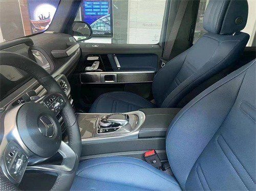 奔驰G500的内饰是奢华与硬派的结合卓越的品格和典雅的工艺在车内表现得淋漓尽致,对细节的千锤百炼是内饰计划中的首要原则。内饰变化巨大,全新的12.3寸液晶仪表、扶手箱、方向盘,都是奔驰最经典的设计理念。两块屏幕组成中控主体。