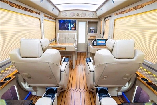 丰田考斯特改装10座商务车,在内饰的改装上可以增加隔断设计,我们可以选择全隔断或者是半隔断,半隔断同样可以根据自己的需要决定是否选择电动门装饰。丰田考斯特10座改装商务车,从内饰的设计上更加注重尊贵和大气之感。华通丰业丰田考斯特10做改装商务车在隔断的设计上同样还增加电子时钟以及显示屏,既不会占用车内的空间,还能够在一定成度上提高内饰的豪华感。