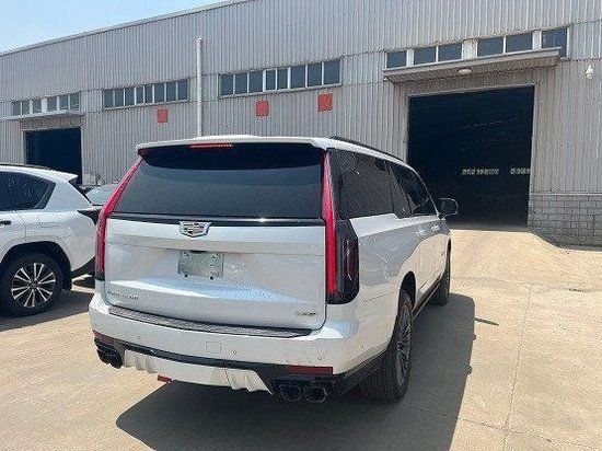 2023款凯迪拉克凯雷德车尾最大亮点是长条状尾灯,从车顶一直延伸到半腰处,保险杠下方是四根粗壮的排气管,彰显其动力的不凡。