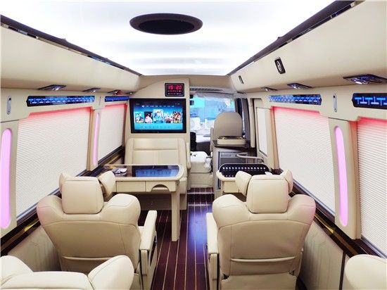 其次从安全性能上考虑,增加隔断的设计可以让司机有一个安静大的驾驶环境,同时也可以带给乘客一个舒适的乘坐空间、最后就是从实用性上来说,丰田考斯特13座增加隔断的设计还可以让我们在隔断上增加电视显示屏以及电子时钟这些设备。丰田考斯特13座内饰上的每一个设计都凸显出了自己的贴心和独特,隔断的设计实用而又大气,但是更加贴心的还有内饰的办公桌椅及冰箱的设计,丰田考斯特13座通常是作为商务用车或者是接待用车来使用,所以在改装设计之时丰田考斯特13座对人们的办公需要进行了充分的考虑,增加舒适的办公桌,以桃木和真皮为材质在视觉上让我们感受到十足的档次感。丰田你考斯特13座作为一款个性化定制的商务接待用车真的是用自己的实力成为备受人们喜欢的尊贵座驾。