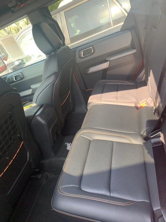 福特烈马 配置:2.3L 4门 10速 双拼真皮座椅 软顶 3.73传动比 标配: 中级包312A(双区自动空调;智能钥匙;车载电源插座;防眩目后视镜;前排座椅加热;远程启动;前排照明梳妆镜;脚部照明灯;反向传感系统;带语音识别的SYNC4;福特Co-Pilot360) HOSS1.0悬挂系统 分式可选4X4 6种GOAT模式的地型选择 18寸铝制轮毂” 32P255/70R18全地形(A/T)轮胎 带标识的LED大灯、LED尾灯 带有交叉交通警报的BLIS(盲点辅助) 车道保持系统 车身同色轮眉 脚踏板 拖车钩(前2后1) SYNC4带8寸触摸屏 3.73锁定后桥终传动比
