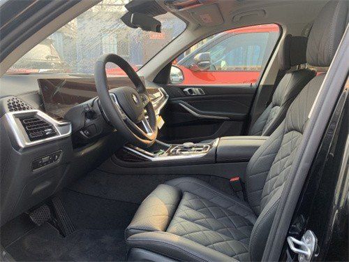 2023款宝马X7车尾方面,镀铬条横贯至尾灯内部,以及下方的双边共两出式平行四边形镀铬排气口,都在展现它身为旗舰车型的霸气元素,车身尺寸方面,其长宽高分别为5151/2000/1805mm,轴距为3105mm。 宝马X7空调出风口与温度显示屏、实体功能按键结合在同一区域,并使用银色装饰条进行点缀。下方盖板下方为带有加热、制冷功能的杯架,进一步提升了车内的豪华氛围。