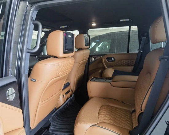 22款加版英菲尼迪QX80 (配置|询价) 5.6L Pro ProActive顶配,5.6升V8发动机,400马力,413磅-英尺,单屏12.3英寸信息娱乐触摸屏,苹果CarPlay和安卓Auto、7速自动挡 Infiniti All-Mode 4WD 英菲尼迪全模式4驱 HBMC液压车身动态稳定系统(后自动找平悬挂)盲点警告(BSW),牵引能力-8500磅,全景,真皮方向盘加热,10向电动驾驶员座椅带记忆,8向电动乘客座椅,英菲尼迪智能钥匙,按钮点火照明,远程遥启,三区空调,前排座椅加热,Bose 音响,17扬声器,后排娱乐系统,7座,22轮配有全天候性能轮胎,自适应自动调平大灯前照明系统,智能后视镜,智能巡航控制(全速范围),车道偏离预防,镀铬格栅包围,带有黑色网眼和下部保险杠,深色镀铬后尾门饰件,深色镀铬侧通风口,第二排船长椅可翻转,第三排可轻松进入,第二排长条座椅60/40分割折叠,空气净化器,盲点侧撞干预,车道偏离预防,二排扶手。
