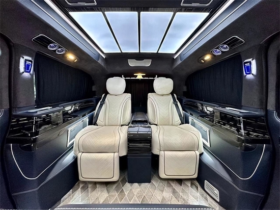 如果你想要入手一台4座商务车,雷克萨斯LM (配置|询价)加价厉害,别克GL8 (配置|询价)又差点意思,不妨看看这台奔驰威霆 (配置|询价)全隔断4座商务车,带给您极致的私密乘坐体验,更适合老板们的出行。外观部分升级了璀璨之星大包围,直瀑式进气格栅,车身加高20公分,高端美观的同时给你带来更大的乘坐空间。对房车感兴趣可以关注微信视频号:谊赫阿辉,带你了解更多商务车、房车知识!180-1769-1185。