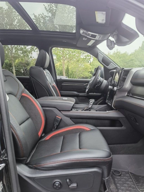 2023款道奇公羊霸王龙做工则完全摆脱了美式的粗糙感,边缘、接缝都处理的很精细,真皮座椅各自独立,配有加热、按摩等舒适功能,每个座椅独立配一个操控手柄,各项功能由乘坐者自己控制。
