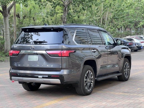 2023款全新丰田红杉、车身侧面来看,新车拥有一个非常庞大的身躯,采用了隐藏式的A、B、C柱设计,营造出悬浮式车顶的样式,外后视镜壳还有银色与黑色可选,提升了该车的时尚感。另外,新车腰线贯穿整个侧面,并在前后翼子板处采用内凹式设计,营造出了极其宽厚的视觉效果,再搭配六螺栓孔固定的20英寸密条辐轮圈,整体搭配展现出了陆上霸主的气息。