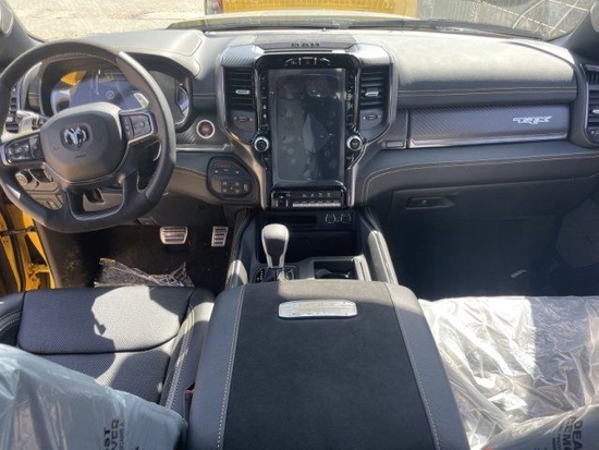 23款全新道奇霸王龙TRX在内饰部分进一步强化了其高性能版本的形象,中控台和座椅随处可见的TRX标识便是最好的例证。同时,作为道奇家族的旗舰车型,新车还配备了12英寸竖置中控屏幕,除了支持蓝牙、导航和车载Wi-Fi等常见功能,还支持Apple CarPlay和Android Auto手机映射
