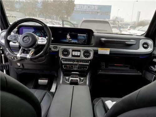 全新G63内饰方面保留了新G500的整体设计,除配色差异外,新车 还换装了全新造型的平底式AMG运动方向盘,其两侧配以打孔皮质包裹,下部镀铬装饰的造型也与新G 500明显不同,看上去十分战斗。此外,全液晶仪表盘+中控大屏的双12.3英寸屏幕设计在新车上也没有缺席,营造出了浓郁的科技感。