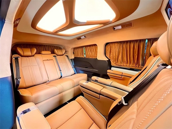 车内采用麂皮绒的软包加上星盾天幕顶灯,整车在看不到的地方,比如四周全部做了隔音的处理,窗户上都加装的是高级私密窗帘,既可以避免阳光的直接照射,维护车内的一个用车环境,也可以很好的保护我们车主的隐私。