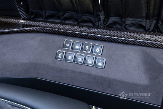 车窗一体式观景隔热私密玻璃,搭配电动隐私窗帘,很好的保证了车内隐私性和独立性。还有免提对讲系统。