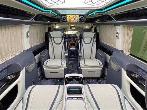 下面,小编想给大家提供一些改装思路。新款奔驰斯宾特可以采用全隔断的布局,高清升降55寸曲屏电视,一键开启。俯视整个奔驰斯宾特商务车内饰,进口柏林音响给展示完美的听觉盛宴。商务车华丽的吧台,整车随行时钟。这些组成的隔断部分不但可以保证后排空间的私密性,也能在后排享受一个娱乐氛围,看电视,听音乐,放松全身心。豪华驾驶座+航空按摩座椅+双人连排座椅。