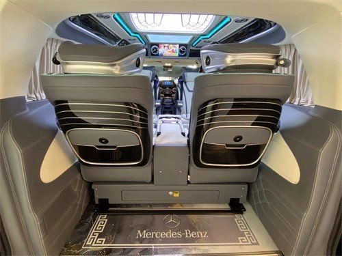 进口奔驰高顶斯宾特座椅旋转对坐搭起小桌板,桌板的贴心的设计四个下凹杯托,或是咖啡酒水的陪伴交流更加畅顺。免提前后对讲系统、带隐私门帘,保证私密空间的同时也能顺畅交流。
