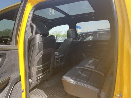 霸王龙的车身前半部分,带有很多发动喷罩和进气格栅。新款霸王龙还有一个小设计得给它点个赞,那就是前机盖中网上新加三个小黄灯,以前大家开越野车时,都喜欢给前机盖中网上加装三个小黄灯,这些厂家都看在眼里,记在心里,现在霸王龙原厂制造时就加装了,以后再也不用自己花钱改了。霸王龙前半车身还带了很多散热孔,因为霸王龙6.2T的发动机动力强劲,更需要大量的尽快的散热,密集的散热孔可以让它顺畅呼吸。霸王龙前脸正中的进气隔栅上有RAM的标志,气场强大,显示了霸气的含义。霸王龙的大灯方采用的是几何多光束大灯,照明效果是自是不必多说。