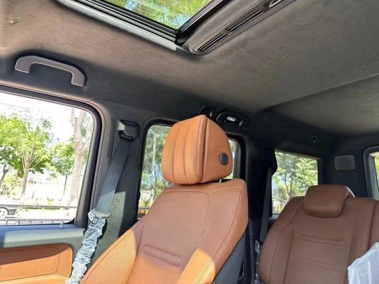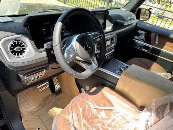 23款平行进口奔驰G400D柴油 在内饰方面豪华气息浓厚,仪表盘采用13.2的液晶显示屏,粗犷之中又不失精致,宽广的空间, 让人瞬间有一种自由奔放的感觉,大量的真皮设计以及一些恰到好处的点缀材质,尽显高贵奢华。中控仪表的设计又很有科技感。