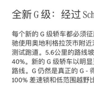 23款奔驰G400d霸气外露,它是越野车史上的经典传奇,维持着30多年来的稳定孔陆地巡洋舰之称的兰德酷路泽,轴距更短,奔驰G400一直采用复古风格,关门声更有子弹上膛的咔嚓声,G级全系标 配三把差速锁,越野爱好者们很清楚,三把差速锁意味着什么,在更极端的情况下完成高强度越野。贵宾购车电话:15620709591 于经理 (微信同电话)。