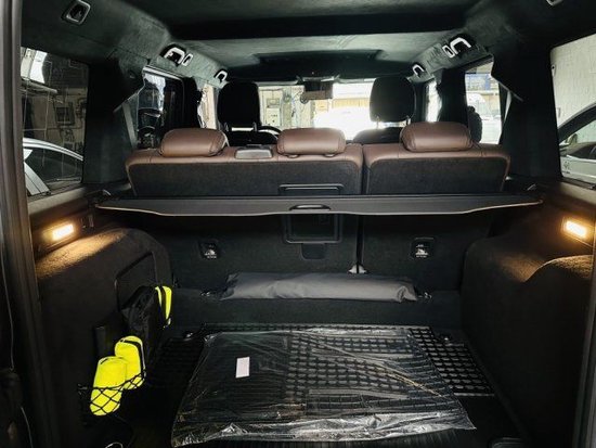 23款奔驰G400车尾仍然采用了后背的备胎设计,但不再布置在尾箱门上,而是通过支架布置在车体上。而这些正是奔驰G诞生的最初目的。平实的表面和简约的直线赋予了G级车独特的风格,这是建筑设计的包豪斯流派所倡导的“功能决定形式”的设计典范。