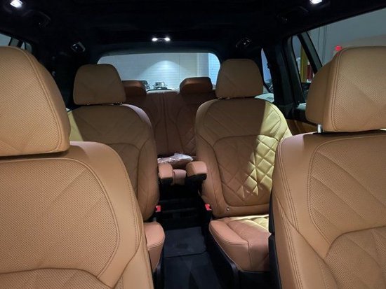 2023款宝马X7做工用料上采用了大量真皮以及金属木纹材料进行装饰,凸显出内在的奢华感。内饰方面,中控台部分还使用了大量的木饰,真皮座椅纹理是经典高贵的菱形纹理,无论是前排还是后排,包裹性都非常好,坐上去也会觉得非常舒适,车内很多地方都有X7的标志。