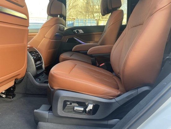 23款宝马X7标配是7座,以2+3+2的座椅布局呈现。今天讲解的这款是第二排还可选装两个独立座椅以2+2+2的座椅布局呈现。全车座椅采用了真皮包裹质感表现十分突出,并且标配了座椅加热。前排座椅还可选装座椅通风以及按摩功能 做为全尺寸豪华SUV,第三排座椅也是人们购车重点关注的一方面。