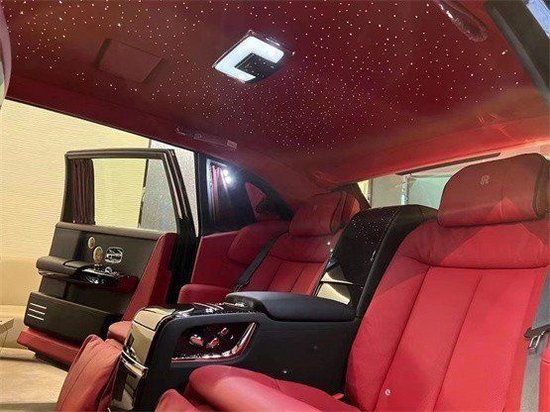 选配:22轮全抛光铝合金轮毂,Bespoke双色定制内饰,单长腰线(黑),前排座椅通风,后排电动窗帘、座椅滚边、缝线、刺绣-黑色,后排航空座椅,石板纹理画廊,流星顶