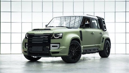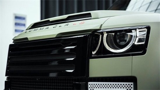 这款基于路虎卫士定制的虏曼挑战者保留了DEFENDER一贯的方正风格,在此基础上融入虏曼独创的宽体设计,台阶式格栅复古经典,同时也有着优化气流走向的作用。在轮拱位置,LUMMA采用了独居空气动力套件的宽体设计,使整车具备更加厚重敦实的气场。