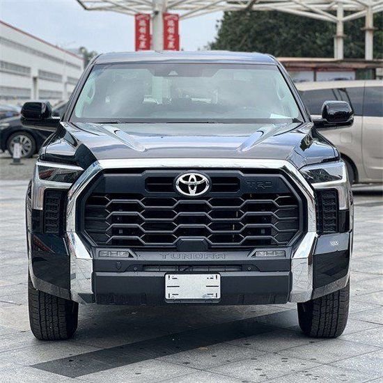 23款丰田坦途直接提供了有棱有角的车头前脸,越野版独具大尺寸蜂窝状进气中网搭配镀铬边框处理,两侧泪痕造型LED矩阵大灯视觉效果并不输给福特猛禽 (配置|询价)。车身侧面看也有了方盒子外观效果,甚至还要熏黑车窗立柱营造出悬浮车顶。黑武士改装风格轮毂搭配原厂越野轮胎,素车就能够实现不错的越野通过性。