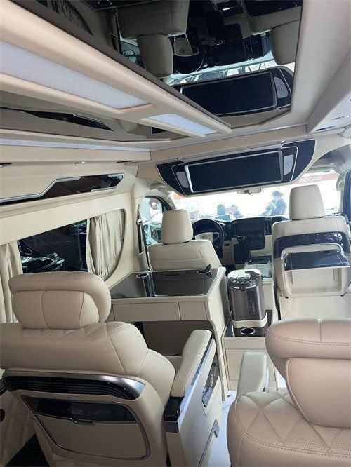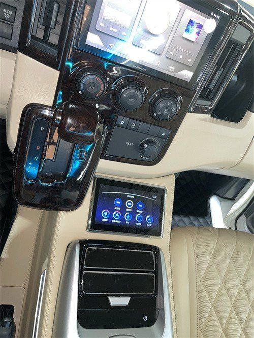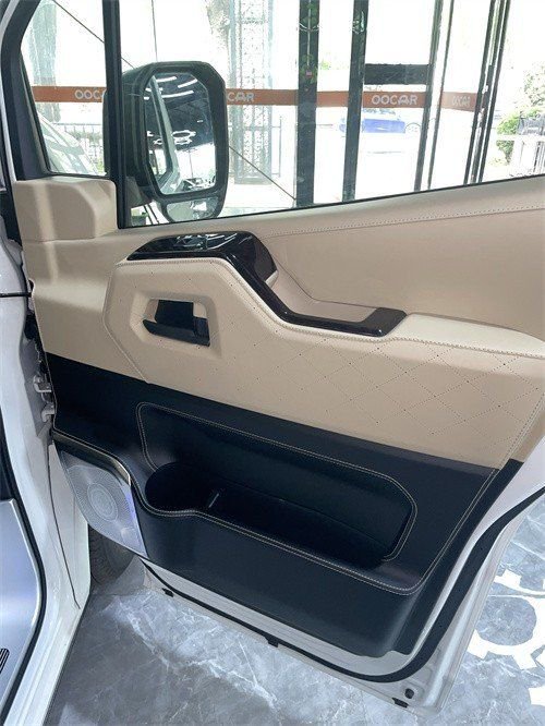 外观装饰件:蒙娜丽莎版大包围,LED大灯总成,16寸铝合金轮毂,外门拉手镀铬套件,镀铬中网,内饰升级:全车进口环保材料,车内甲醛含量低于国际标准0.08毫克,整车高档Nappa皮包覆,整车空间造型设计,全车高光水转印桃木饰件艺,桃木方向盘,主驾驶六项电动调节(通风、加热),副驾驶四项电动调节(通风、加热),定制款大容量冰箱扶手箱,副驾驶靠背折叠桌板(桃木饰板、无线充电),主驾驶后定制办公桌(杯托、纸抽盒、抽屉),烧水壶+定制底座抽屉,后舱可拆卸商务桌板,3C安全认证—航空头等舱(触摸控制屏),功能:通风、加热、气动按摩、电动调节、180°轻松旋转、集成触摸控制屏、轻质化全冲压骨架、带3C安全认证——三人座沙发床,功能:电动双控调节、180°放平、轻质化全冲压骨架、座椅下方带抽屉。三色调节主顶灯,定制星空顶+顶部氛围灯,顶部流水环绕氛围灯,侧壁氛围灯,星空款壁灯,集成触摸控制系统,高清造型吊顶多媒体互联网络电视, JBL高级音响系统(12个扬声器,7.1声道影院系统),百叶窗隐私窗帘,柚木地板(一体式无轨),电动侧滑门,尾门造型轻量化设计(不影响尾门液压支架正常开关),全车强化隔音(质量20-25分贝