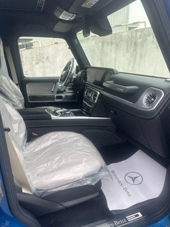 22款奔驰G500 (配置|询价) 颜色:南海蓝外观,白色内饰 配置:AMG外观包,20轮毂,大暗夜包,独家内饰包,