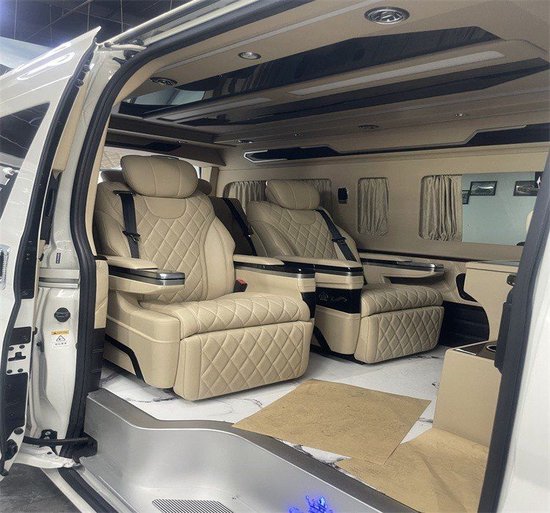 新款丰田海狮的航空座椅有着超乎寻常的尊贵感和舒适感,侧壁更换意大利顶级真皮包袱手感极佳,侧壁菱形格的设计使整车层次分明立体感更强。侧窗豪华电动窗帘,面料阻燃隔热、隔光、隔音。顶棚更换意大利顶级麂皮绒零污染零伤害的环保材质,搭配桃木件及氛围灯的组合,营造出温馨舒适的乘车环境。