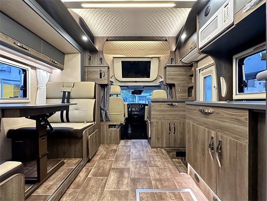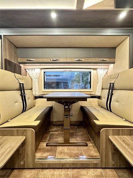 车身长度(长x宽x高)为5990 x2490 x3180mm,外观优雅大气、线条流畅,基于国产依维柯专业底盘打造,加宽后桥、定速巡航、胎压警报、双发电机的配置,使得整车平稳性极好。并提供丰富的智能舒适配置、一体化集控系统,以及丰富的影音娱乐系统。在车身左侧搭配外置遮阳棚,即可随时在蓝天白云的包围下享受悠闲时光。这种极致利用每一处细小空间的设计,的确可以给用户极高的舒适体验。