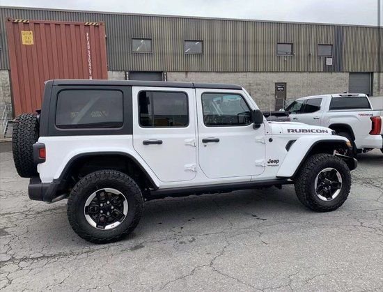 但是我们来看他的越野装备的时候,你才能知道,他就是为了越野而生的,首先,前后差速锁,前置四驱,分时四驱,整车采用非承载式车身,前后悬架都是多连杆整体桥式的,要知道,连号称硬派越野的酷路泽LC300的一百多万的豪车也只有后悬架才是多连杆整体桥式设计,17寸的全地形轮胎,备胎也都是全尺寸的,这个全地形轮胎感觉比城市SUV的21寸还要大上一圈。很多人好奇,牧马人的前保险杠为什么那么长,是为了陪女朋友坐在上面看星星吗?有知道的吗?可以留言告诉我!