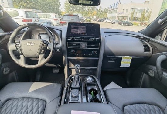 ProActive顶配,5.6升V8发动机,400马力,413磅-英尺,单屏12.3英寸信息娱乐触摸屏,苹果CarPlay和安卓Auto,盲点警告(BSW),牵引能力-8500磅,全景,真皮方向盘加热,10向电动驾驶员座椅带记忆,8向电动乘客座椅,英菲尼迪智能钥匙,按钮点火照明,远程遥启,三区空调,前排座椅加热,Bose 音响,17扬声器,后排娱乐系统,7座,22轮配有全天候性能轮胎,自适应自动调平大灯前照明系统,智能后视镜,智能巡航控制(全速范围),车道偏离预防,镀铬格栅包围,带有黑色网眼和下部保险杠,深色镀铬后尾门饰件,深色镀铬侧通风口,第二排船长椅可翻转,第三排可轻松进入,第二排长条座椅60/40分割折叠,空气净化器,盲点侧撞干预,车道偏离预防,二排扶手