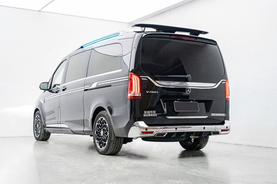 车尾处配备悬浮式尾翼,时尚霸气,下包围处采用大面积镀铬金属条包覆点缀,重工艺的细节,使它从一众豪华商务车中脱颖而出,轻松傲视同侪!