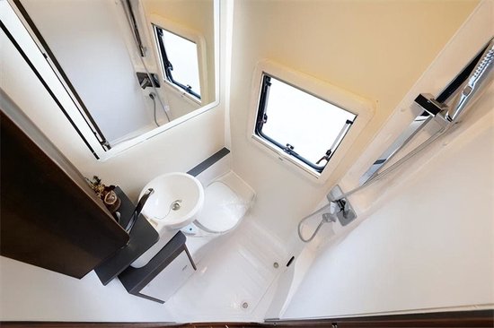 车尾的厨卫区域和前方的大会客区有门隔断,车尾的厨房区域台面较为宽敞,带盖洗菜池、电磁炉、蒸烤一体机、下吸式大功率抽油烟机等应有尽有,还可选装西门子洗碗机。封闭式卫生间配备花洒套装、进口塞特福德C400坐便器(带19.3升黑水箱)、进口MAX带雨感双向换气扇、智能浴镜。好了本款铂驰铂金系列侧拓展依维柯房车小峰哥就同大家介绍到这里。阅览世间美好,带您跨越山河,品味人间烟火,给您一个移动的家 -我是小峰哥