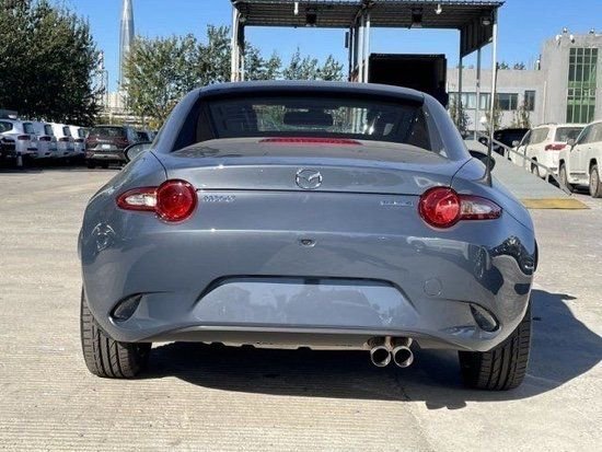23款马自达MX5 外观前脸采用U形大嘴式进气格栅,下方保险杠两侧配有LED日间行车灯。车尾采用单边双出排气布局,下方保险杠两侧加入反光板尾门上方配备高位刹车灯。