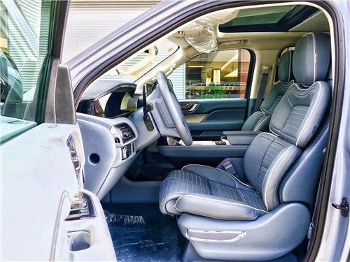 新款林肯领航员这款车的内饰方面设计非常豪华,配备了多功能方向盘,拥有接打电话、蓝牙以及加热等功能。方向盘前方是12.3寸全液晶仪表盘,尺寸够大,分辨率也很高。旁边是10寸的中控显示屏,许多报警、导航、音乐和三区空调等功能都可以在这上面进行调节。