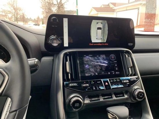2022款雷克萨斯LX600采用了对称式中控台设计,继续提供液晶仪表和HUD抬头显示等配置,并首次加入双屏显示器,该中控屏由12.3英寸的上屏和7英寸的下屏组成。另外,车辆启动按钮被设置在了中控屏一侧,并首次配备了指纹识别。