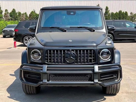 新款奔驰G63 (配置|询价)带有镀铬垂直格栅条的散热饰板打造出别具一格的前脸造型。AMG 车身风格组件等装备的点缀进一步提升了质感,让车辆前端更富表现力。夜色组件包括高光黑色车轮、颜色稍暗的照明系统、喷涂曜岩黑色漆的精选附加部件以及深色后车窗,令车辆更具个性气质。