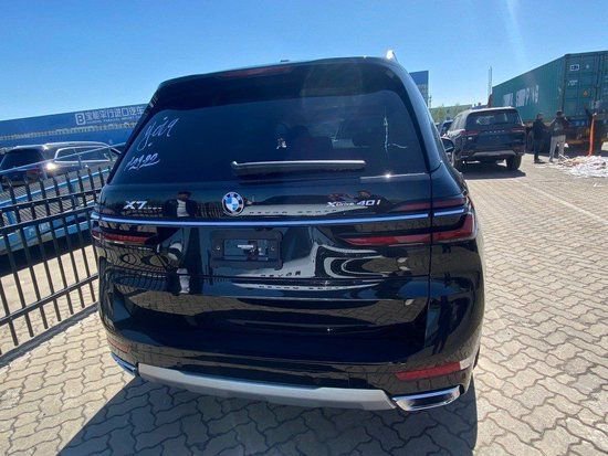 23款宝马X7的尾部造型比较立体,并且尾部的层次感突出,车顶集成高位刹车灯的设计,新车还将会配备鲨鱼鳍天线设计,尾灯组内部条纹式的分割灯带照明后辨识度更高,后保险杠依旧选用银色的镀铬来进行一定的装饰,双边单出的排气管设计使整个尾部充满运动气息