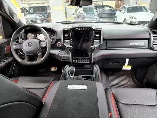 23款全新道奇霸王龙TRX在内饰部分进一步强化了其高性能版本的形象,中控台和座椅随处可见的TRX标识便是最好的例证。同时,作为道奇家族的旗舰车型,新车还配备了12英寸竖置中控屏幕,除了支持蓝牙、导航和车载Wi-Fi等常见功能,还支持Apple CarPlay和Android Auto手机映射