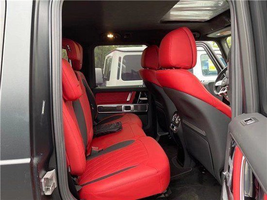 22款奔驰G63硬朗的方盒子造型,没有多余的弧度、没有任何曲线,眼光所及满是直锋利的线条,就连车顶上的导雨沟槽,也是沿着车顶周围一圈,分外焊接上去的金属槽,车门搭钮更是绝不虚心,硬挺挺地屹立在门缝之外,外凸的轮拱、造型如同 梯形的引擎盖。