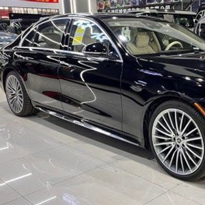 23款美规奔驰S500 四驱 长轴AMG运动包黑米 生产日期:22年10月份选配:AMG运动包 暗夜包 后轮4.5度转向 20寸AMG多幅熏黑轮毂 主动氛围灯 车身同色扰流板 高光泽杨木内饰 控制台黑色虚线装饰 桃木方向盘