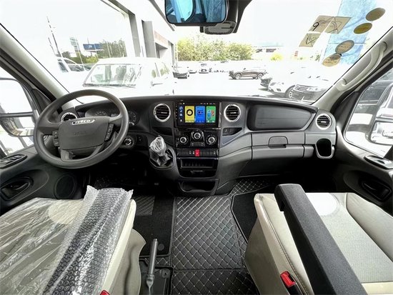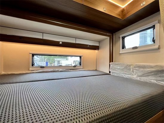 进入生活区域,白色和棕色木纹配色相得益彰,搭配暖色系的灯光,整体看起来十分温馨。家具也均为进口E0级环保标准房车板材,护卫乘客的健康安全。由于是双拓展的设置,我们可以看到内部空间十分大,最大程度提升了房车的生活质量。布局方面,采用了C型房车常使用的布局,由额头床、会客区、厨房区、卫浴间、睡卧区组成,各区域配置齐全,让乘客享受高品质的房车生活。