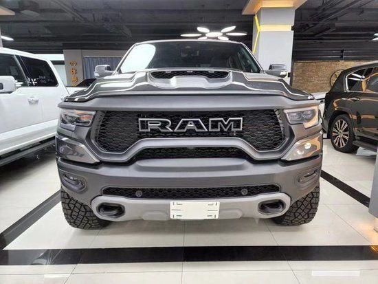 全新2023款道奇霸王龙传承了道奇Ram 家族高大威猛的造型设计,同时细节部分融入了更多高性能元素,包括经过黑化处理的前格栅,引擎盖两侧的黑色进气口,以及为了容纳巨大的机械增压器而设计的通风口,前倾式车头,相较中规中矩的家族设计无疑多了几分对路面的侵袭感。车内氛围堪称豪华,绝对可以媲美高级轿车。眼神中没有透露出一丝的活泼神韵,唯一展现出来的只有凶狠。前杠是铁质前杠带拖钩,散发这金属气息,沉稳大气。