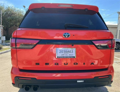 23款丰田红杉这款车型在车尾造型方面采用了和新款雷克萨斯lx (配置|询价)车型相似的设计手法,不仅配备了最新样式的多层次后尾灯,而且还采用了熏黑处理,让整车拥有着更高的辨识度,除此之外该车还会搭载最新样式的字母车标,而且配备了最新样式的车身后扩散器,用来进一步提升车辆的运动气息。
