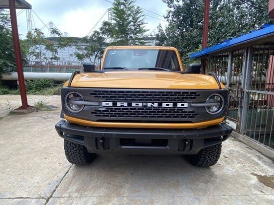 2023款全新福特烈马Bronco 采用方正的整体造型,新车的发动机盖充满了规整的线条,圆形的头灯组延向中网延伸出光带,“Bronco”字样直接镶嵌于进气格栅中间。此外新车车门、侧/尾窗和车顶等位置采用了可拆卸的设计,十分硬派。